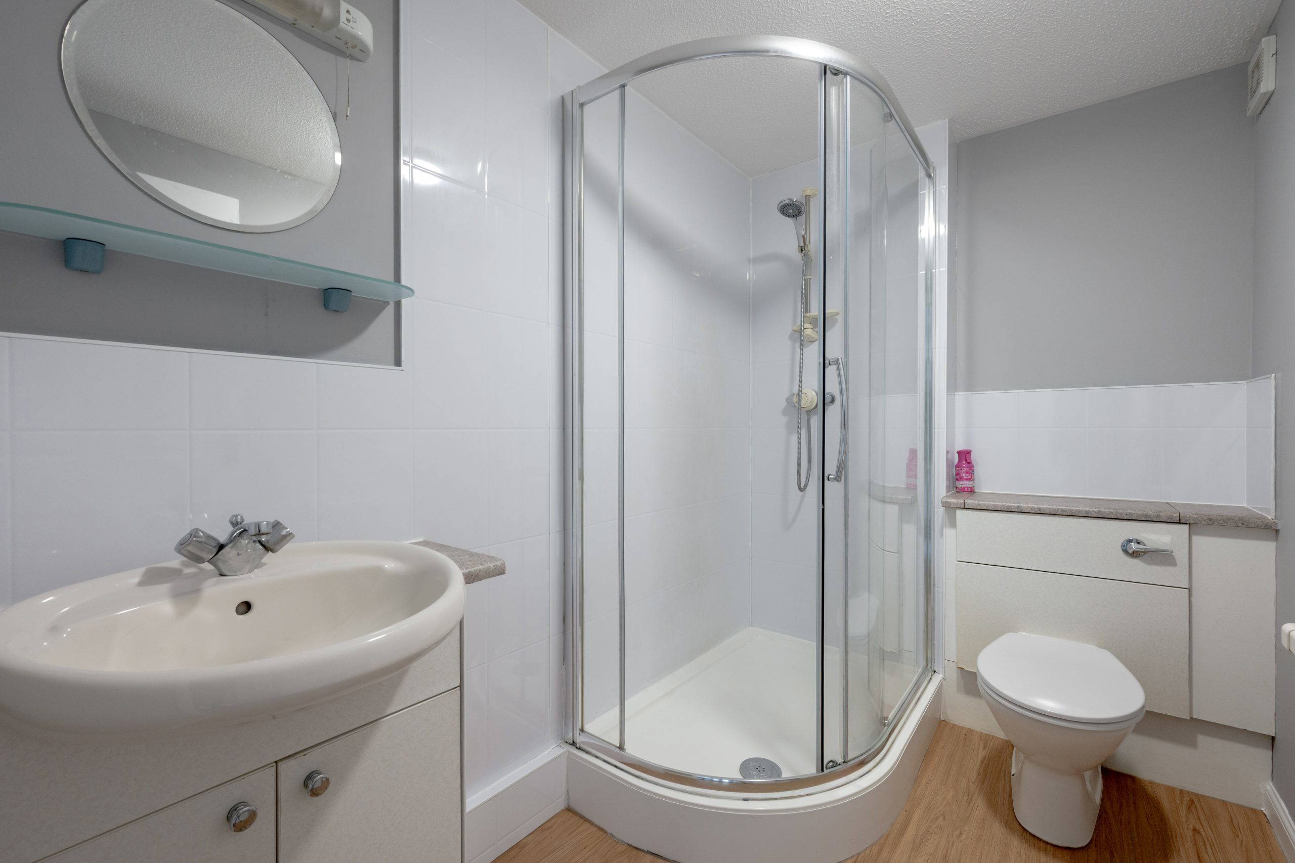 Shower room fitted with two-piece suite
